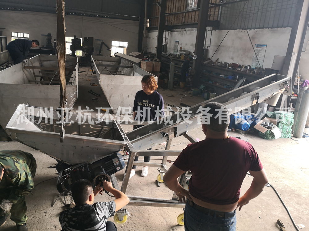 湖州亞杭螺旋輸送機(jī)為客戶定制的斗式無軸螺旋輸送機(jī)正在最后調(diào)試整改階段,即將完工!調(diào)好就可以將該臺(tái)斗式螺旋輸送機(jī)嫁人了!